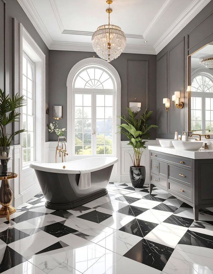 The checkerboard floor is black and white design at its most confident and most classically beautiful — a pattern so enduring it has graced beautiful bathrooms from Art Deco hotel suites to Victorian townhouses to contemporary Parisian apartments. When done well, it creates a floor that is genuinely spectacular: graphic, rhythmic, and completely timeless.