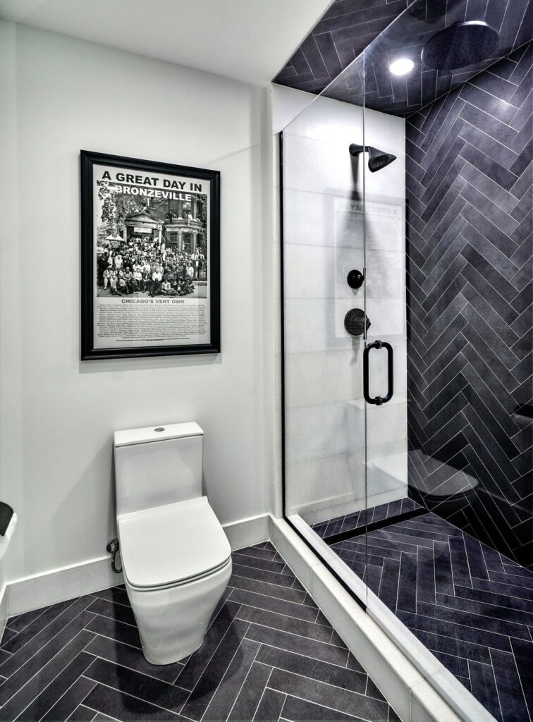 In a black and white bathroom, tile pattern is the primary decorative tool — and the range of graphic patterns available in this palette is extraordinary. Herringbone in alternating black and white creates a dazzling optical energy. A basketweave pattern in small black and white tiles has a beautifully intricate, vintage quality. Bold geometric patterns like hexagons, diamonds, or large-scale chevron bring an Art Deco sensibility that is deeply glamorous.