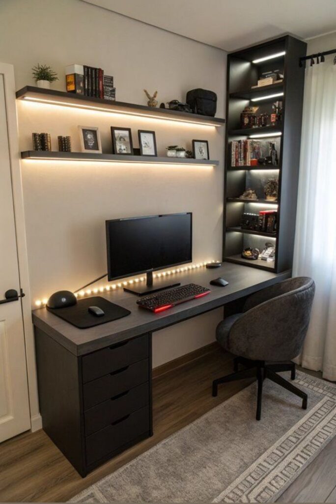 Overhead fluorescent lighting is the enemy of coziness. If you want your home office to feel genuinely warm and inviting, you need to think about lighting the way a film director would — layering multiple warm light sources at different heights and intensities. A warm amber desk lamp for focused task lighting. A floor lamp in the corner for soft fill light. A string of fairy lights tucked along a bookshelf or window frame for that magical, almost candlelit glow. Use bulbs in the 2700K to 3000K warm white range, and watch your office transform completely once the sun goes down.